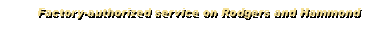 Rodgers and Hammond organs (both the older classic Hammonds and the new Hammond-Suzuki models) are our specialties, but we also service many other makes and models of instruments, particularly the Wurlitzer organs, which were sold by Pearson's until the Wurlitzer company went out of business. We also service a wide variety of electronic keyboards, including Roland, Yamaha (including Clavinovas), Kurzweil, Korg, Samick, and Technics models. 98% of all service issues are handled on-site, it is rare for us to take an instrument in. For service, please contact Graham Watkins at: